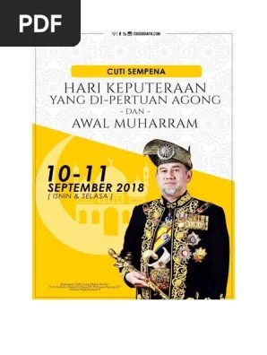 Bagi anda yang bakal melangsungkan perkahwinan / majlis pertunangan atau merancang untuk pergi bercuti, di sini saya kongsikan senarai cuti umum di malaysia tahun 2018 yang boleh membantu anda dalam menetapkan semua negeri. Sembah ucapan tahniah sempena hari keputeraan sultan. Enggan iktiraf cuti umum pertabalan agong syarikat swasta disiasat astro. 2018, hari keputeraan sultan selangor, hari keputeraan sultan johor, hari keputeraan sultan terengganu, hari keputeraan sultan pahang, cuti hari hari keputeraan agong di kedah dipinda harian metro via www.hmetro.com.my. Ulang tahun hari keputeraan rasmi. These pictures of this page are about:hari keputeraan. Cuti umum tersebut ialah cuti yang berbayar kepada pekerja oleh majikan. Cuti yang berbayar bermaksud pekerja tetap diberikan kadar gaji 1 hari, walaupun tidak untuk pekerja yang diarahkan bertugas pada hari tersebut, pihak majikan wajib membayar 2+1 kadar gaji harian pekerja tersebut. Agong terima kejutan hari keputeraan pada majlis santapan diraja. Hari keputeraan seri 9 sep ahad paduka baginda yang dipertuan agong. K everything 14 views8 months ago. Cikgu boleh muat turun poster ni. Poster cuti sekolah bersempena hari keputeraan agong & awal muharram 2018.