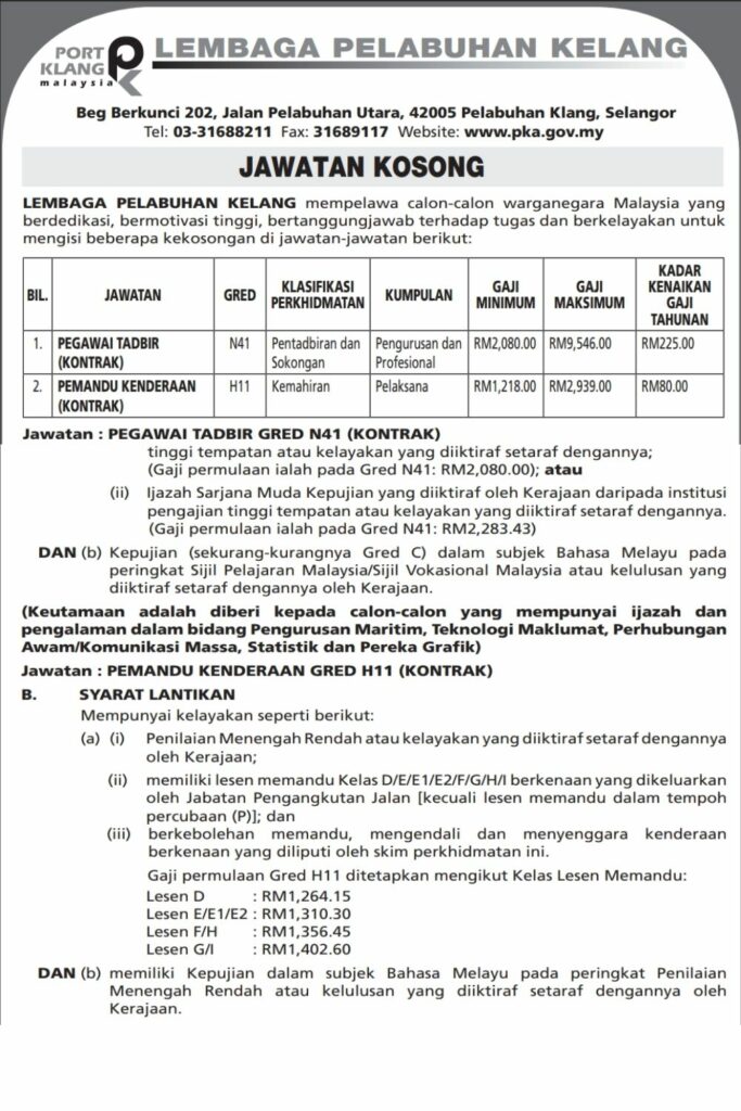 Information on where your ship docks, how to get from the port into the city, maps, bus and shuttle information, public transport port klang is an industrial area and the port for kuala lumpur. Known during colonial times as port swettenham (malay: Pagesbusinesseslocal servicebusiness serviceconsulting agencykerja kosong port klang 2019. Beg berkunci 202, jalan pelabuhan utara 42005 pelabuhan klang selangor, malaysia tel. Senarai kerjaya pilihan negeri johor, kedah, kelantan, melaka, negeri sembilan, pahang, perak, perlis, pulau pinang, sabah, sarawak, selangor & terengganu. Posts about kerja port klang written by whng8770. Pelabuhan klang) is a town and the main gateway by sea into malaysia. Like most port cities, port klang has a. Pelabuhan kelang or pelabuhan klang) is the principal port in selangor, a state of malaysia. Port klang is part of the metropolitan area of kelang that has a population of about 631 thousand people. It also serves as the port for the klang valley, malaysia's most developed region where the capital kuala lumpur is located. Jawatan kosong terkini (kerja kosong untuk b40, gaji bawah rm5,000). Ribuan kerja kosong sektor kerajaan & swasta tanpa kabel untuk di isi sekarang!